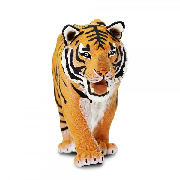 Figurină din plastic pictată manual care redă fidel caracteristicile fizice (culori, trăsături) ale tigrului siberian. Acesta este cel mai mare dintre speciile de tigri și cea mai mare felină de pe pământ. Tigrii siberieni sunt vânători solitari. Puii stau cu mama lor cel mult doi ani, apoi pornesc în căutarea unui teritoriu propriu. Masculii se îndepartează de locul unde s-au născut, însă femelele rămân adesea aproape de teritoriul mamei.